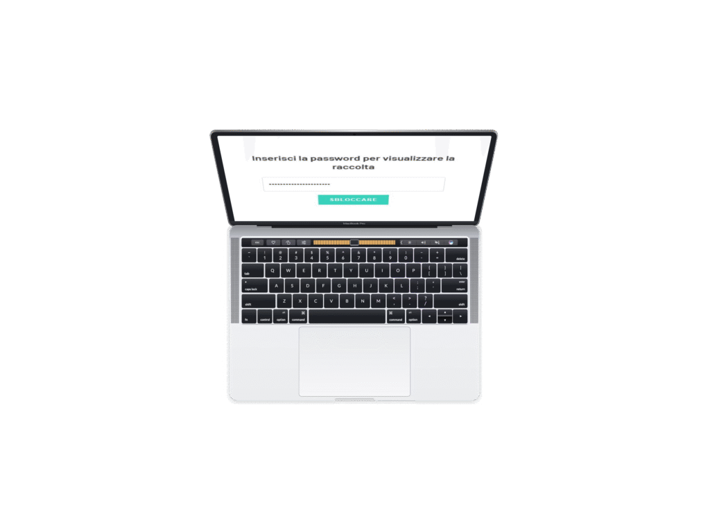 Il cliente riceve una mail con un link protetto da password per visualizzare la collezione, garantendo un accesso sicuro e semplice.